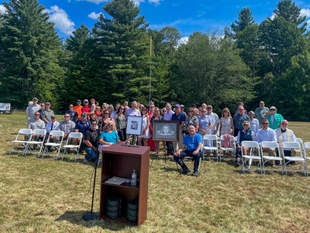On August 23, 2025, a helicopter landing zone in Weld was dedicated in memory of Caren Daugherty, a former LifeFlight of Maine patient and annual summer visitor to nearby Webb Lake. Dozens of community and family members attended the event, which was organized by Caren’s husband, Brent Daugherty.