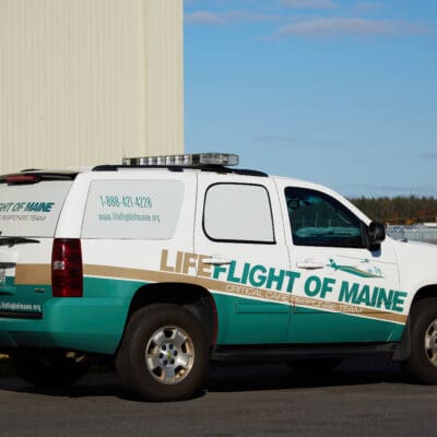 LifeFlight’s aircraft and quick response vehicles are based in Bangor at Northern Light Eastern Maine Medical Center and Bangor International Airport, Lewiston at Central Maine Medical Center, and Sanford at Seacoast Regional Airport. Together they cover the entire state, including offshore islands, remote mountains, and wilderness areas. Ground ambulances are provided through partner agencies using LifeFlight teams and medical technology.