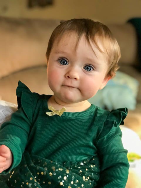 By the time Sunny was discharged from the NICU, the irritation that had been visible in scans two weeks earlier had vanished, but the uncertainty about long-term effects continued, and still continues in some ways. Though, with each passing month Sunny is growing normally and concerns are fading away. There was uncertainty about her hearing, but her medical team now believes her hearing is normal. “She’s a year old. She’s crawling and pulling herself up, doing all the normal things that she should be doing,” Angela said in a recent conversation. With a big, wide-eyed smile, Sunny is living up to her name.